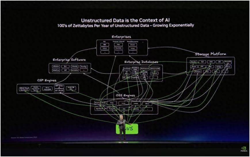 黄仁勋对外释放了一个关键信号:在AI从训练走向推理的深水区,数据中心的黄金矿产正在从处理结构化数据的传统数据库,转向处理非结构化数据的AI引擎。单纯的算力堆砌正在让位于“数据精炼”,成为有效Token。