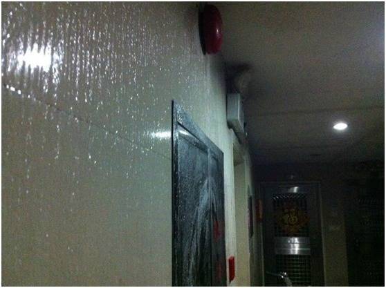 回南天中不少楼道内的墙壁都会出水
